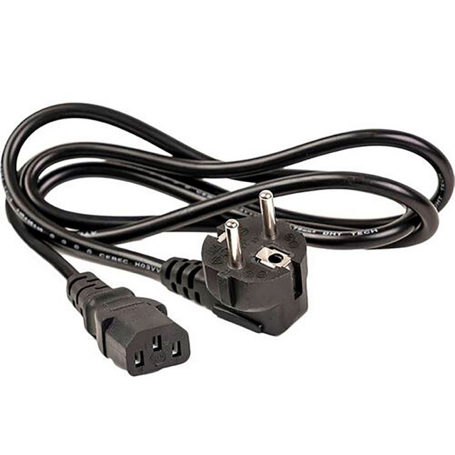 Мережевий кабель живлення, підходить для блок живлення всіх виробників, в яких роз'єм підключення у вигляді трапеції. Використовується в потужних блоках живлення (150 ват і вище). Вилка підключення кутова.
